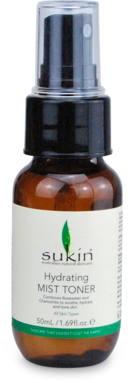 Sukin Hydrating Mist Toner is a hydrating facial mist which combines Chamomile and Rosewater to help soothe, purify and cool tired skin. it\'s completely alcohol free and can be used any time your skin is feeling tired, stressed or overheated during hot days. Sukin Hydrating Mist Toner can be applied after cleansing or after make-up application and is suitable for all skin types. Free From: Sulphates, Parabens, Synthetic Fragrances, Animal Derivatives, Harsh Detergents, Propylene Glycol, Artificial Colours, Triethanolamine & Mineral Oils Australian Made, Natural, Cruelty Free, Vegan & Carbon Neutral