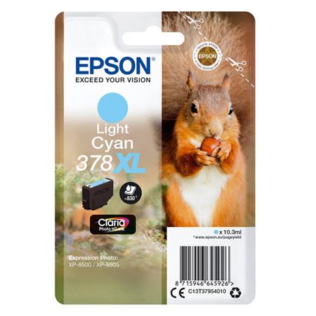 C13T37954010 - Epson 378XL Light Cyan Original Claria Photo HD High Capacity Ink Cartridge (Squirrel). This printer ink cartridge works with: Epson Expression Photo XP-8605, Epson Expression Photo XP-8500, Epson Expression Photo XP-8505, Epson Expression Photo XP-8000, Epson Expression Photo XP-8005, Epson Expression Photo XP-8600, Epson Expression Photo XP-8700