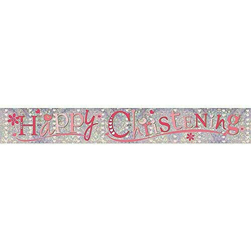 Decorate your Christening with this gorgeous "Happy Christening" Foil Banner, in pink and silver. This fantastic banner is the perfect decoration piece when you are celebrating a Christening. Product Information:• Foil Banner• Christening• Message: Happy Christening• Colour: Pink• Length: 2.7m