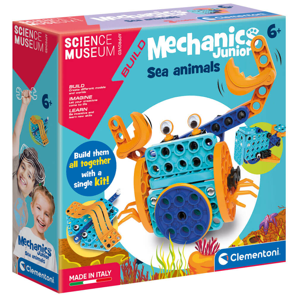 Discover and assemble different animals of different habitats with this incredible Mechanics Junior kit! With more than 130 components to assemble, this fantastic set allows you to build 3 cute marine models, including a crab, whale and stingray. The perfect way to develop manual skills, hone intelligence and stimulate creativity. Product Information: • Mechanics Junior: Sea Animals • Clementoni • Age: 6+ • Measures: 20 x 20 x 6 cm