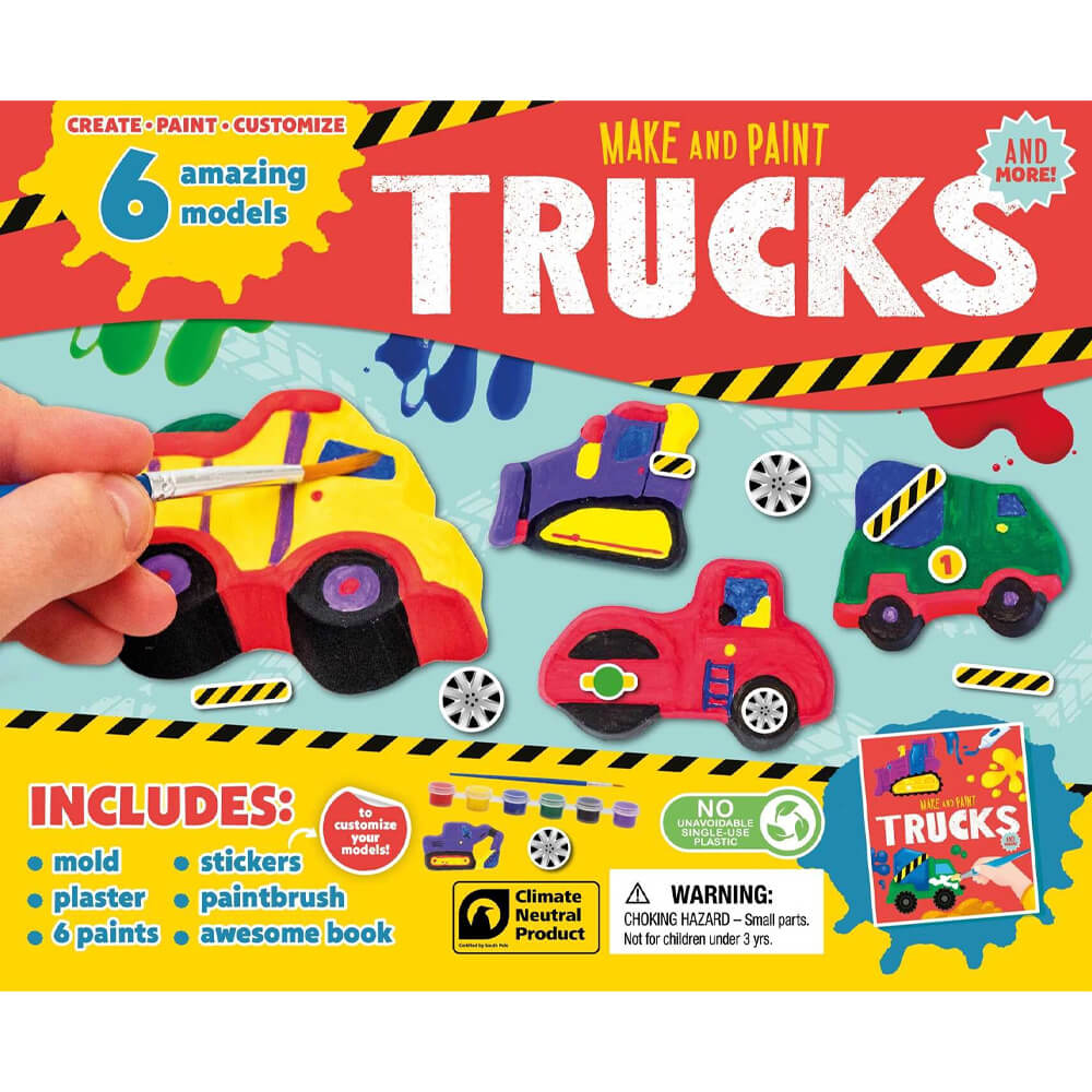 Make, paint, and customize six of your own super cool construction vehicle models with this amazing craft set. With six popular vehicles to mould, plus paints, a brush and stickers to decorate them with, Make and Paint Trucks & More is packed with creative fun! Product Information: • ISBN: 9781801082778 • Author: Igloo Books Ltd • Publisher: Igloo Books Ltd • Format: Paperback • Pages: 24 • Dimensions: 28 x 22.8 x 4cm