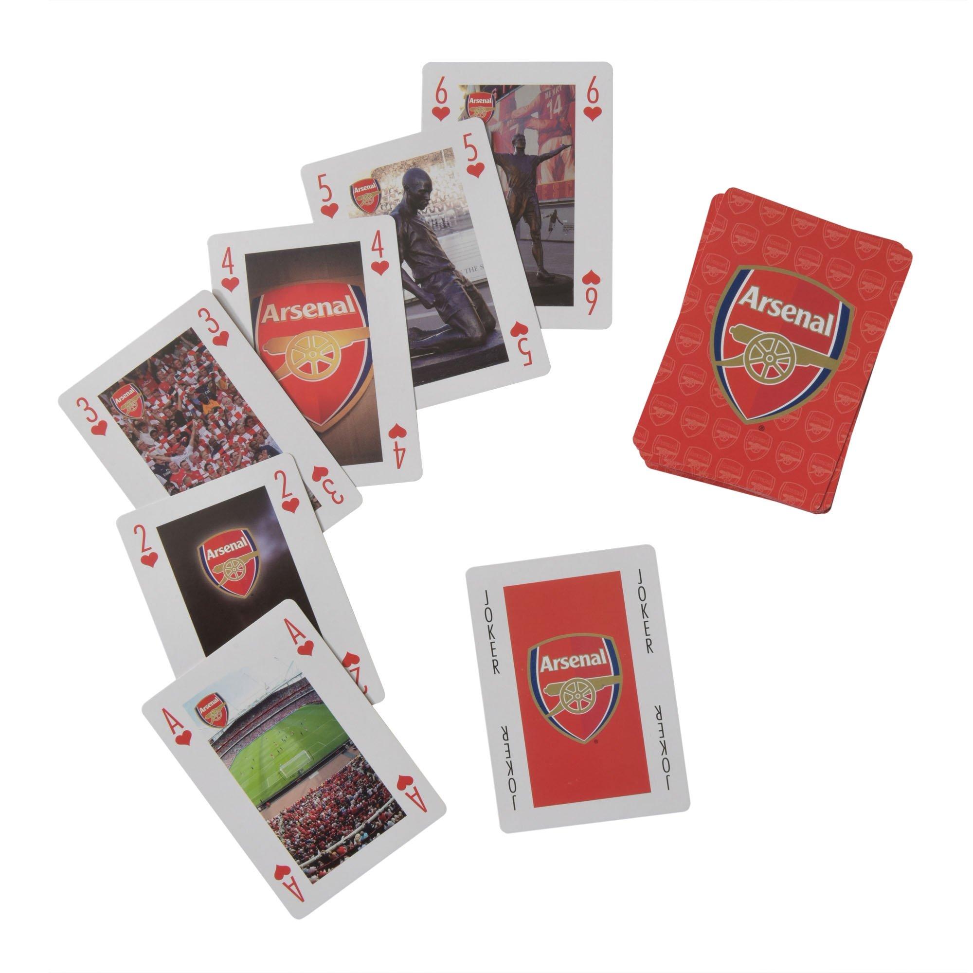 Be a cut above the rest with these Emirates Stadium playing cards. Each card features an image shot in and around the famous stadium. 52 playing cards and two joker cards A durable semi-gloss design for easy shuffle Product code: N01115