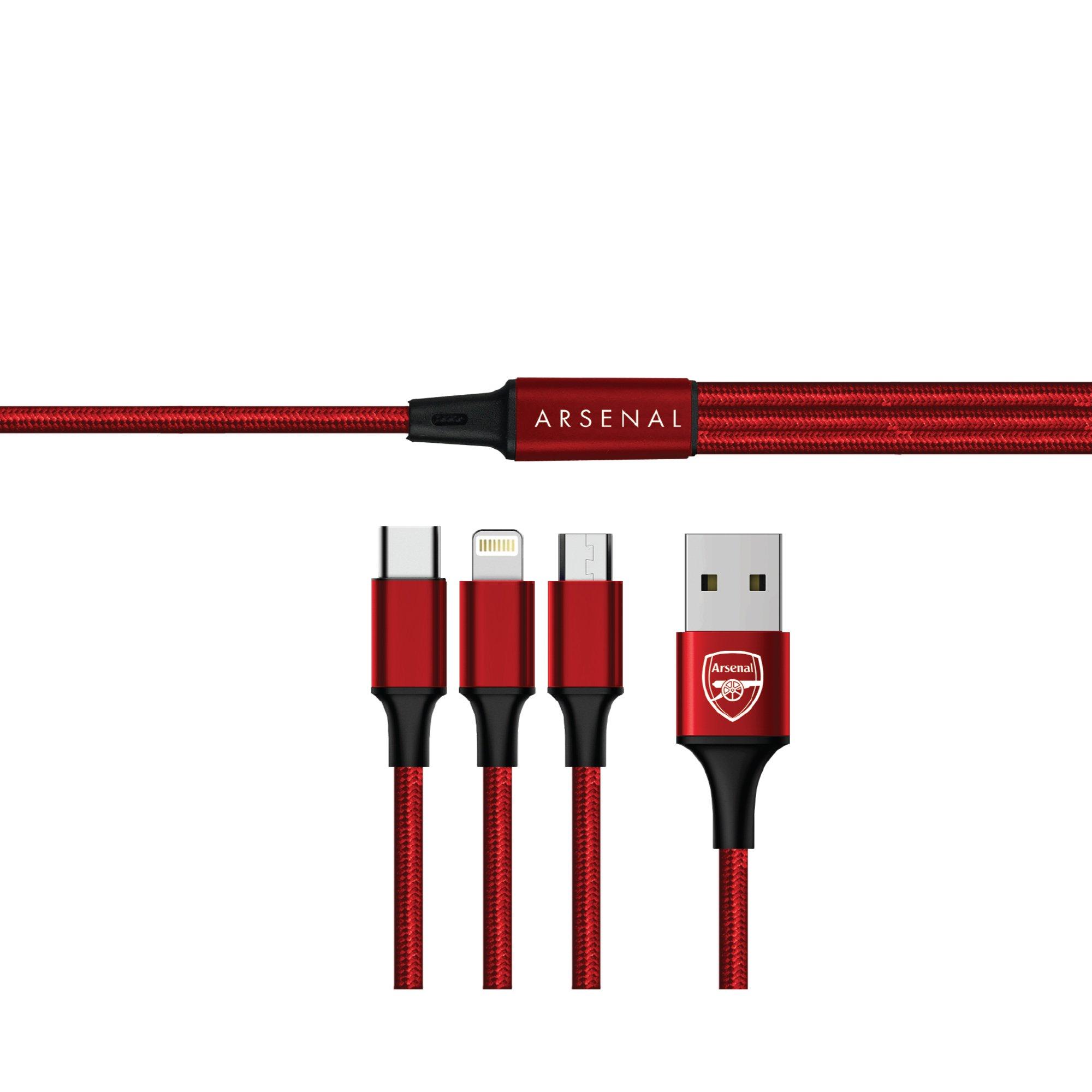 An-all-in one solution to charging multiple devices. This lead is compatible with all Apple Lightning, Android Micro-USB and Type-C charging ports to effectively cover almost the entire smartphone, tablet and accessory product market for re-charging. With faster charging support along with the ability to charge three devices simultaneously, this is the only lead you will ever need. Along with smartphones, tablets/iPads and Type-C enabled laptops, you can also charge cameras, power banks, speakers and lots more which commonly share at least one of these connection parts. Faster-charging support (2.0A) Type-C port Apple 8 pin lightning port (includes iPhone 5,6,7,8 & X) Android Micro-USB port Superior build quality Colour: Red/Black Product code: N03636