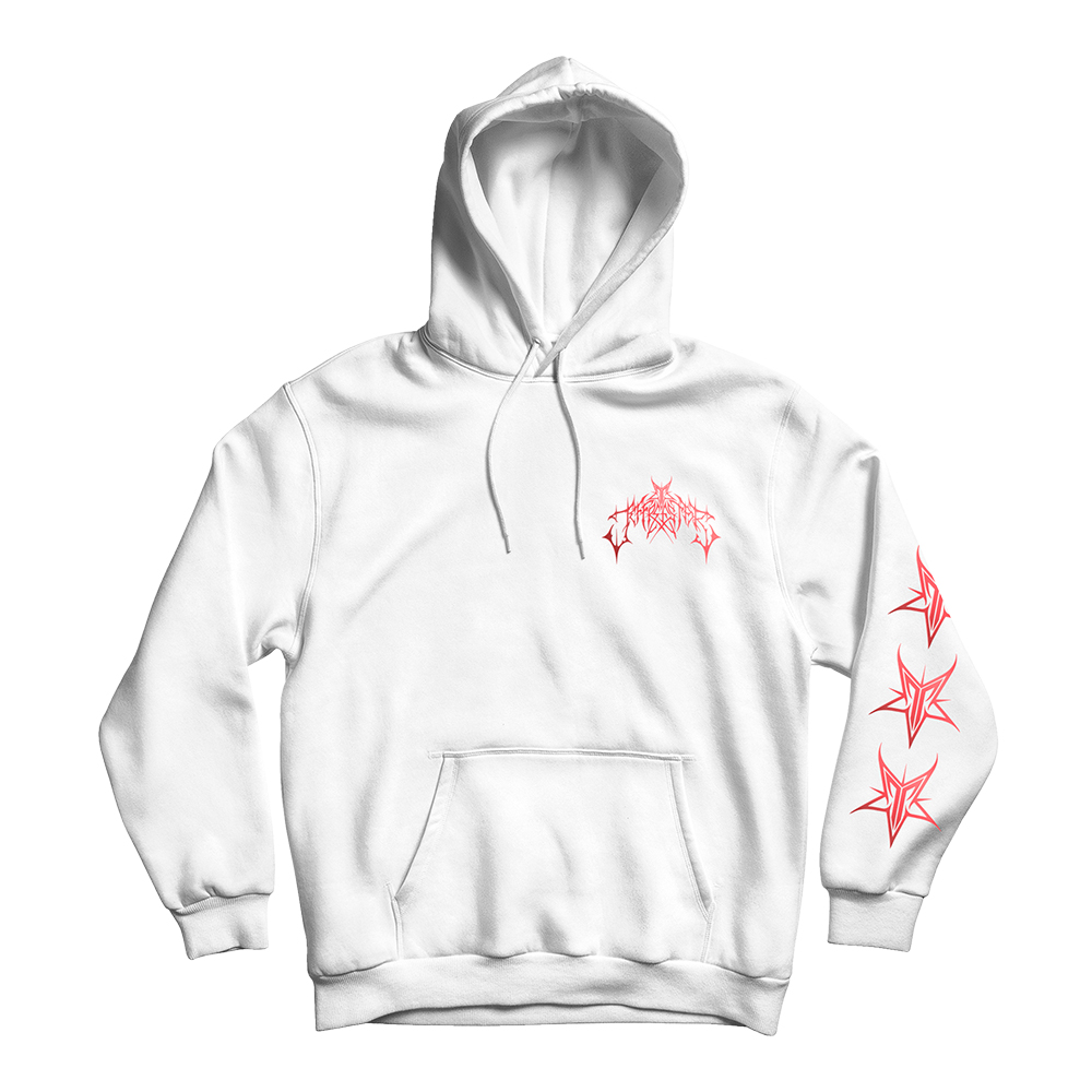A white printed hoodie. Take your loungewear up a level with the Jeffree Star Cosmetics Scene Queen White Hoodie. This super comfy; ultrasoft; unisex white hoodie features a black with red foil print on the back; a repeating red foil logo print down the left sleeve; and a Jeffree Star metal logo on the front left pocket. Jeffree Star approved! BEAUTY BAY is an approved retailer of Jeffree Star Cosmetics