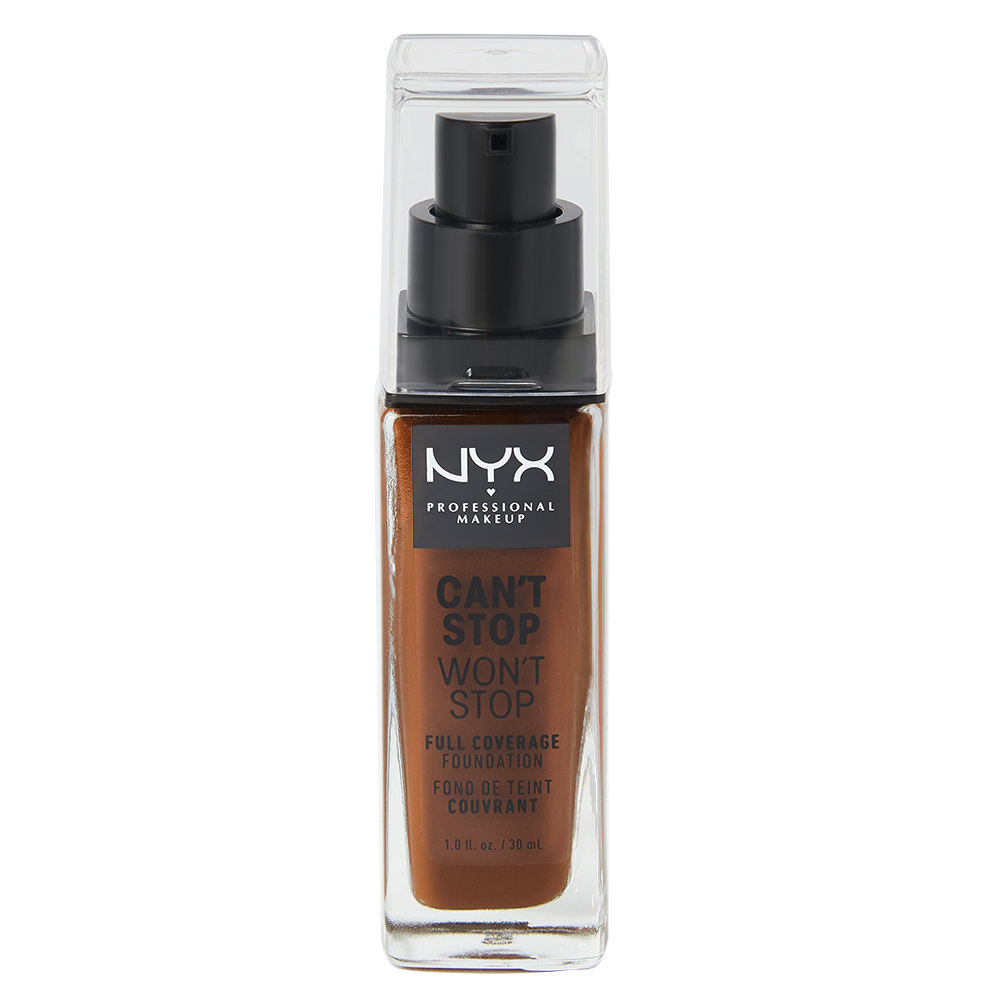 A fullcoverage foundation.Achieve your most flawless base yet with the Can’t Stop Won’t Stop Foundation from NYX Professional Makeup. This highcoverage; ultramatte foundation glides onto the skin for an allday finish that lasts. The lightweight formula gives a waterproof; transferproof finish that still feels creamy and soft on the skin. Available in fortyfive shades to suit every skin tone; this foundation works to control shine and mattify the complexion; whilst still being noncomedogenic. CrueltyfreeVegan