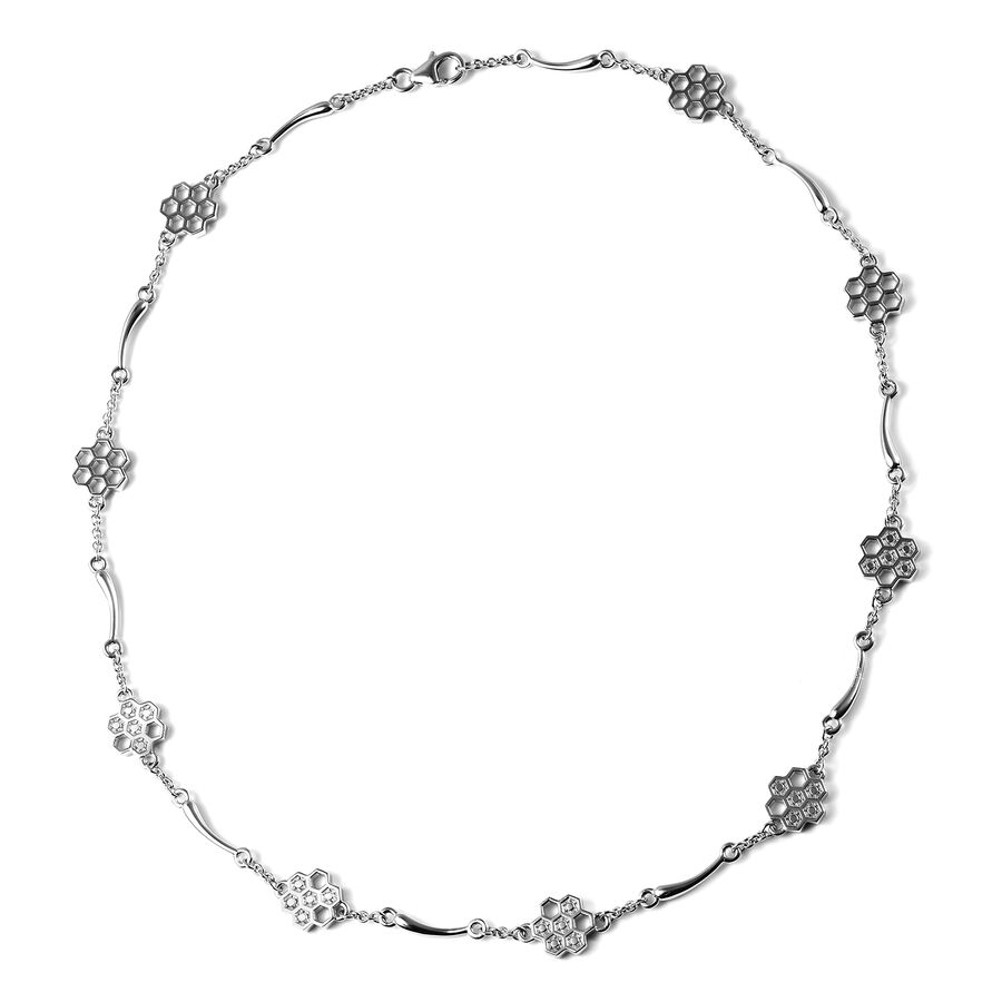LucyQ Honeycomb Collection - Rhodium Overlay Sterling Silver Station Necklace (Size - 18)