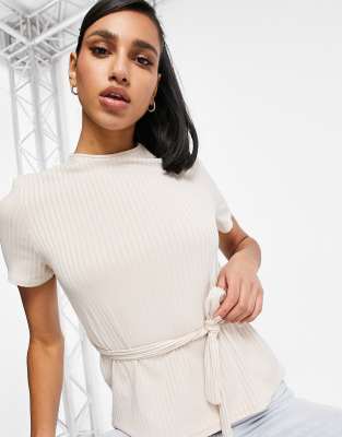 Club L London ribbed t-shirt in cream co-ord-Pink