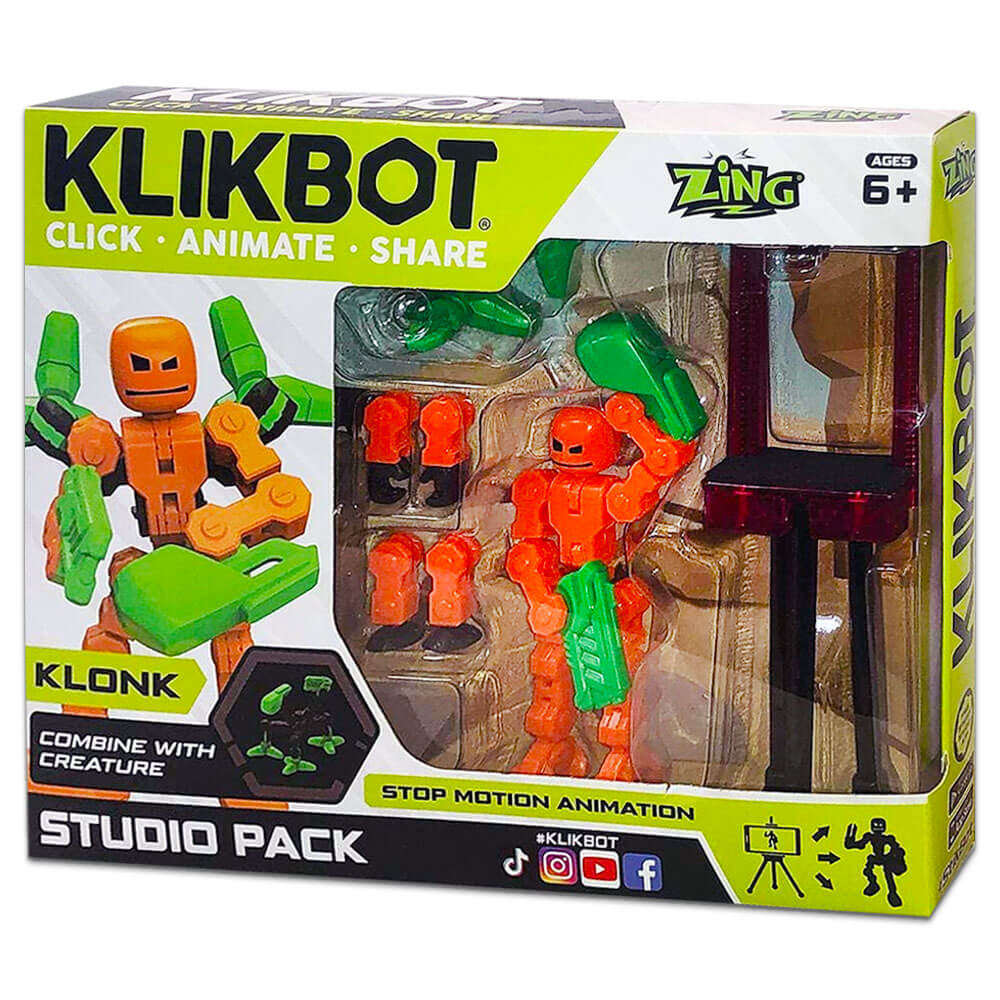 With interchangeable pieces, articulating limbs and accessories, your Klikbot is ready to travel the universe and go on any adventure you can imagine! Includes: • Klikbot Minion • A creature that converts into battle armour • 1 x Phone Tripod Klikbot heroes are trying to save the universe from the evil Modulus and his Minions. This studio set includes a Klikbot Minion, a creature that converts into battle armour and a phone tripod. Perfect for pretend play or download the free StikBot mobile app for iPhone or Android and start making movies! Product Information: • Zing Klikbot Studio • Design: Assorted • Age: 6+ • Measures: 16.5 x 13 x 2 cm Please note: Colours and designs may vary, only one supplied.