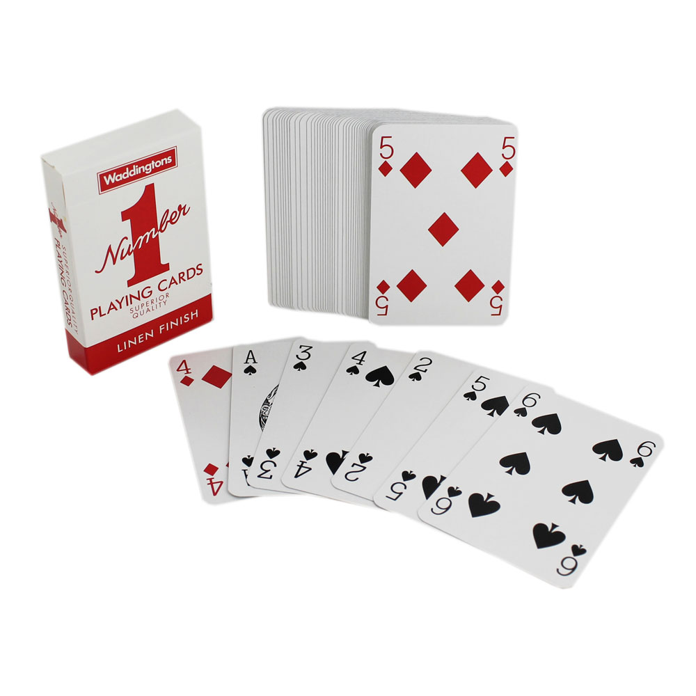 Keep the boredom at bay with this high-quality pack of traditional playing cards, complete with a linen finish. Perfect for all of your favourite card games - from snap to solitaire and trumps to rummy - the hours will fly by. An essential buy for rainy afternoons, long journeys, family game nights and family holidays. Product Information: • Playing Cards • Brand: Waddingtons • Linen finish • Design: Assorted • Measures: 9 x 6 x 2cm. Please note: Colours may vary, only one supplied.