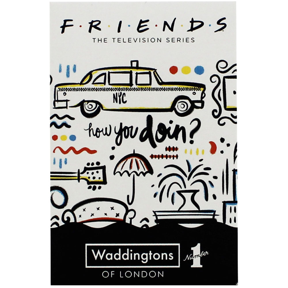 Friends fans can now play with this bespoke pack of Waddingtons Number 1 playing cards. Play your favourite card games with your favourite moments from the world's most loved television series. Great game on-the-go, at home and the perfect travel companion hours of entertainment as you master much-loved card games from snap to black jack. Product Information:• Playing Cards• Design: Friends• Waddingtons Number 1• Superior quality• Pack size: 9.2 x 6 x 2cm