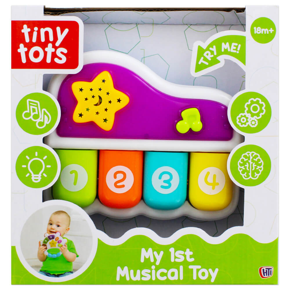 Encourage your little ones to be creative and strike a chord with the Tiny Tots: My 1st Musical Toy. With fun sounds and flashing lights, this wonderful role-play toy has been designed to aid brain development and motor skills. Press down on the keys and shapes to discover lots of different sounds! Product Information: • My 1st Musical Toy • Tiny Tots • Sound and flashing lights • Age: 18 months+