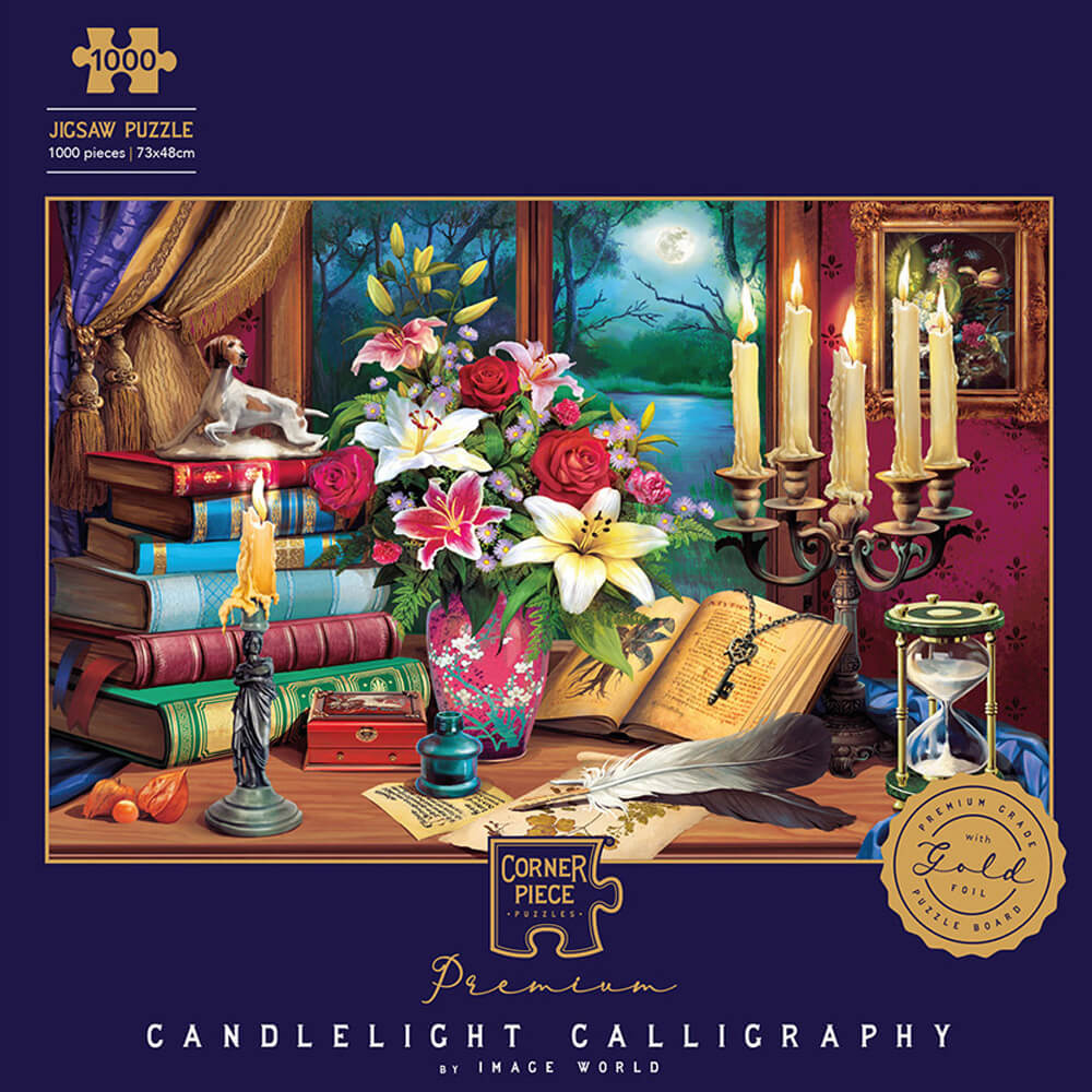 Candlelight Calligraphy 1000 Piece Gold-Foiled Premium Jigsaw Puzzle