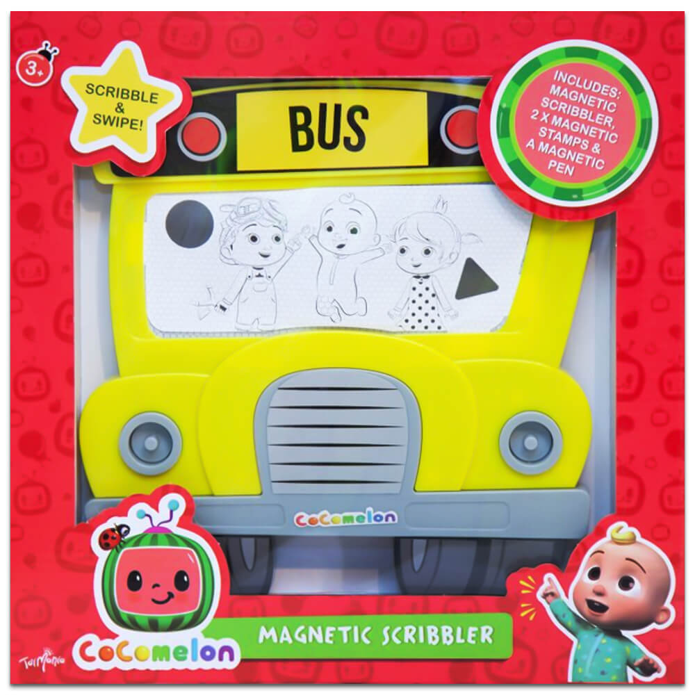 Get creative and join your favourite characters from the popular and educational Cocomelon series with this fabulous magnetic scribbler! Includes: • 1 x magnetic scribbler • 2 x magnetic stamps • 1 x magnetic pen With so many options of what to draw, it\'s the perfect boredom buster for creative little ones who can simply rub out their old design and start again. Product Information: • Magnetic Scribbler • Design: Bus • Cocomelon • Ages 3+ Warning: This product contains small parts. Not suitable for children under 3 years - choking hazard.