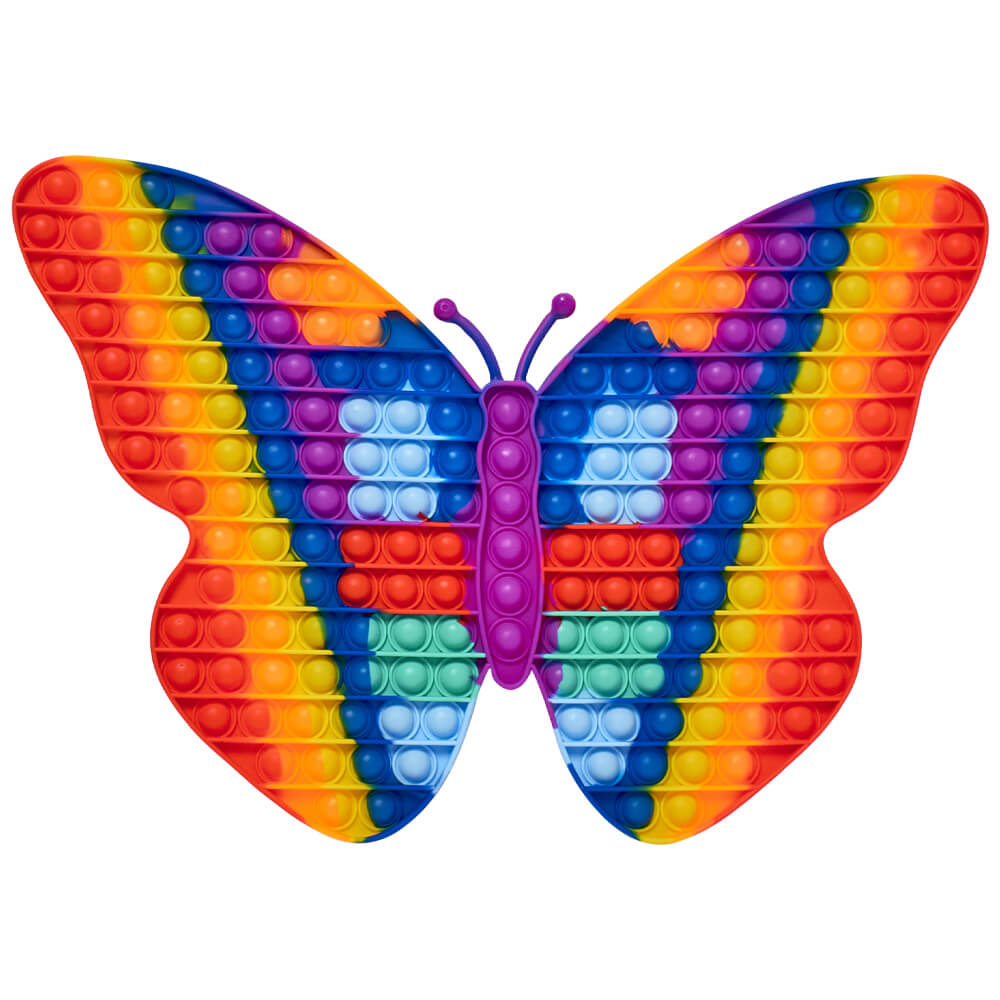 Keep yourself occupied with this amazing Giant Rainbow Butterfly Fidget Pop! This giant fidget toy is covered in bubbles that make a satisfying pop sound when pushed inwards. Press the bubble on one side and watch as it appears on the other side, ready to be pushed and popped all over again for continuous fun! Ideal for serial fidgets, this colourful toy is incredibly satisfying and helps to relieve stress and anxiety. Product Information: • Giant Fidget Pop • Design: Butterfly • Colour: Rainbow • Measures: 45 x 35 cm Please note: Colours and designs may vary, only one supplied.