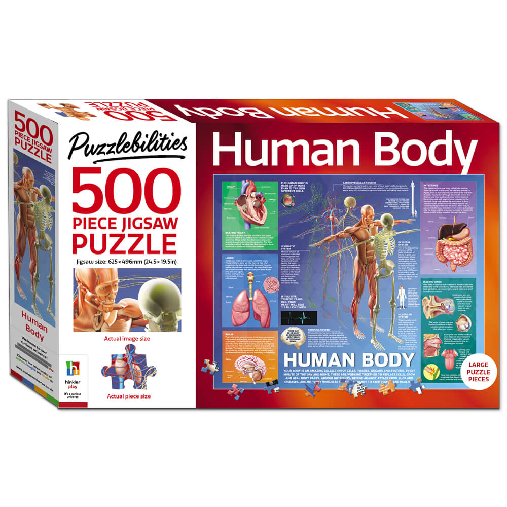 Have hours of fun piecing together these puzzle pieces to create a detailed image of the human body. This informative puzzle includes 500 high quality large jigsaw pieces. A fun puzzle featuring an array of human body facts, that is sure to boast a challenge for whoever takes it on, perfect to complete on your own or with friends and family. Product Information: • Human Body • Jigsaw Puzzle • Large Puzzle Pieces • Brand: Puzzlebilities • Pieces: 500 • Measures: 62.5 x 49.6cm