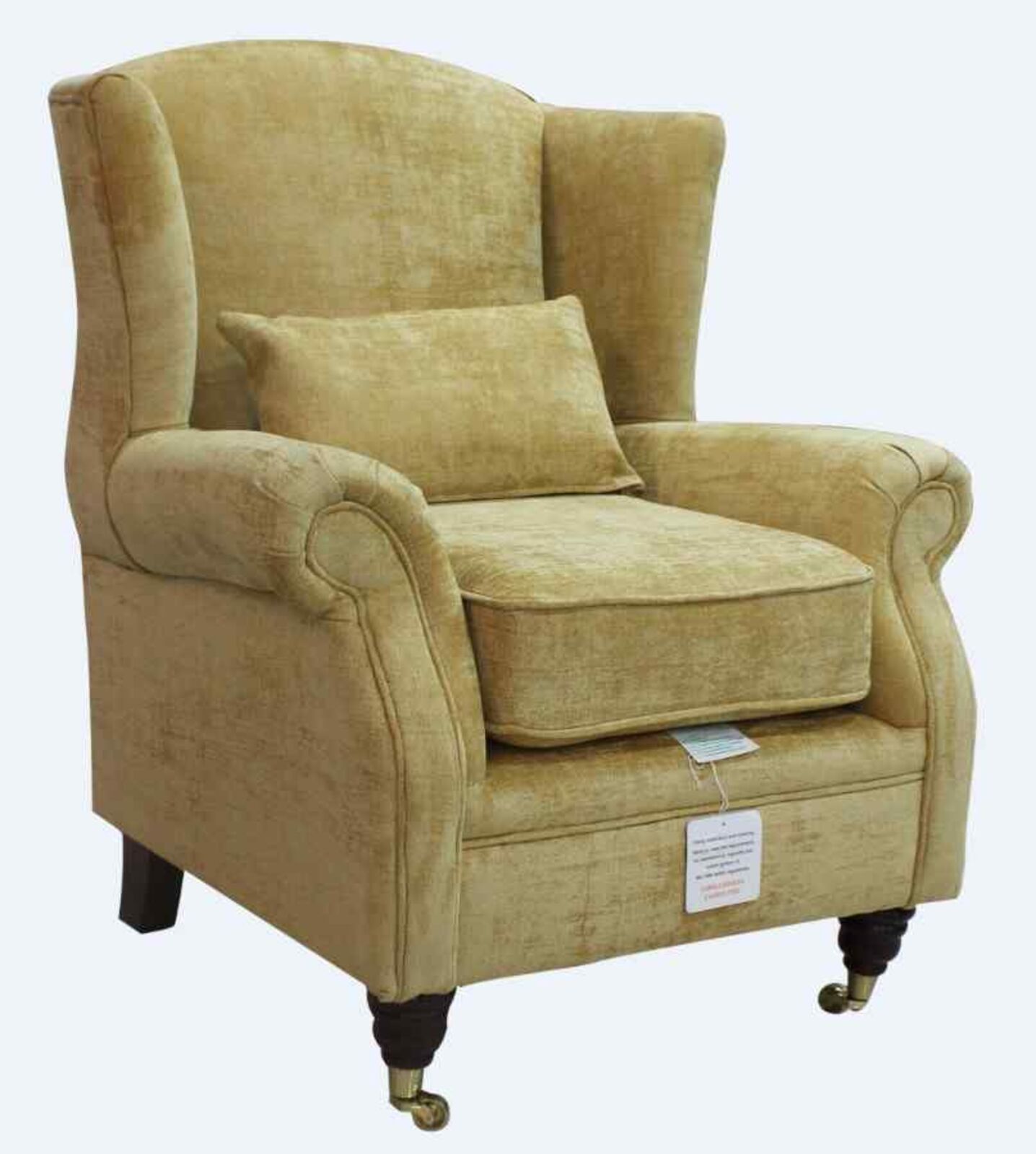Wing Chair Fireside High Back Armchair Velluto Gold Fabric