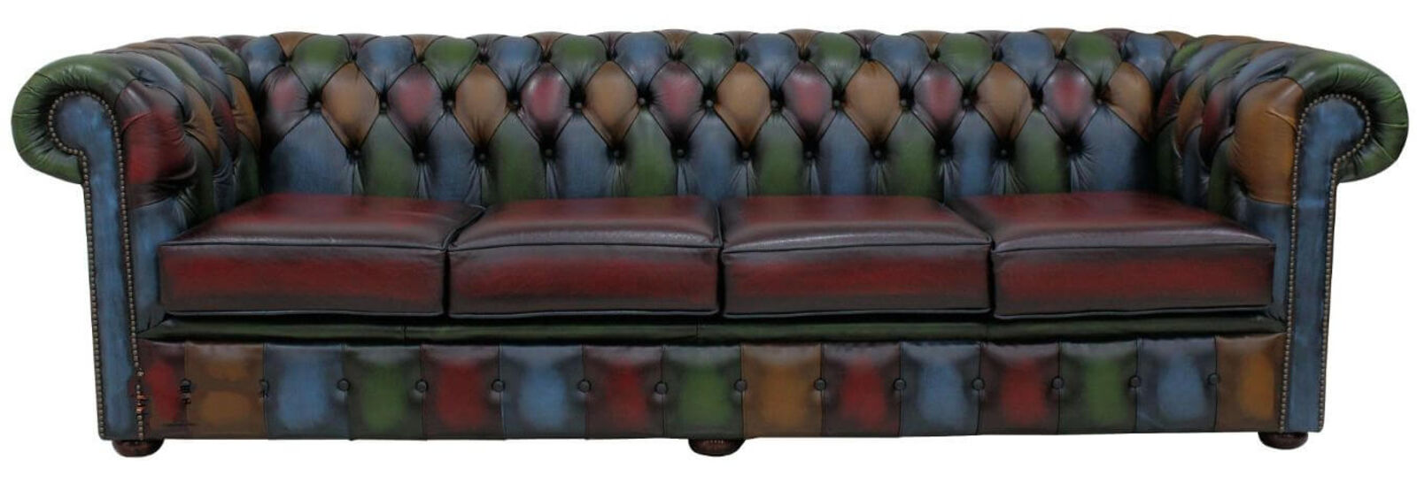 Chesterfield Patchwork Antique 4 Seater Settee Leather Sofa Offer