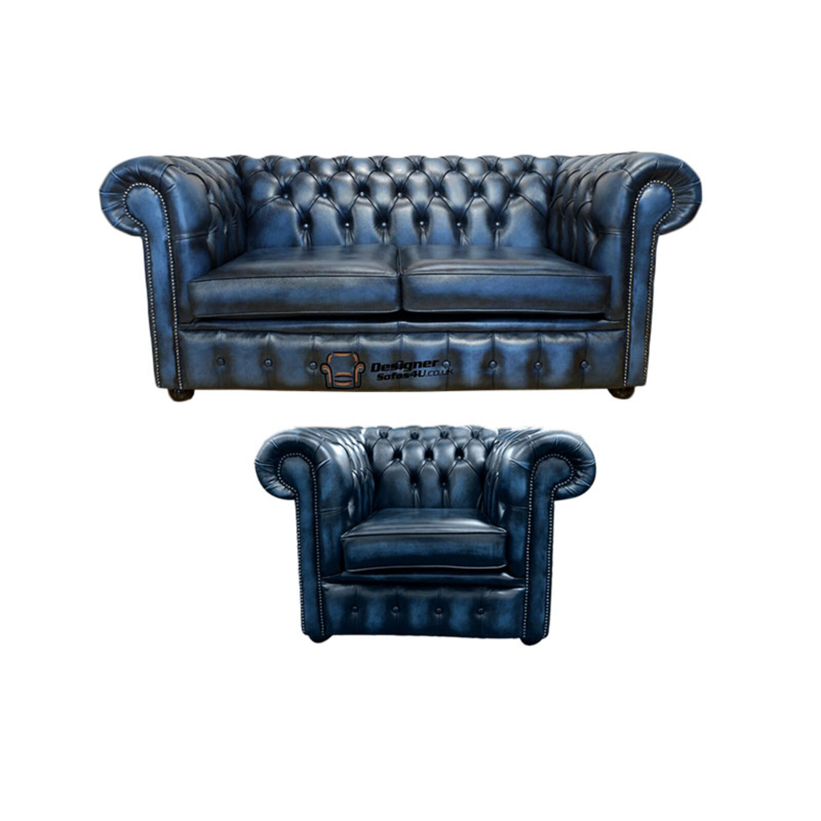 Chesterfield 2 Seater Sofa + Club Chair Leather Sofa Suite…