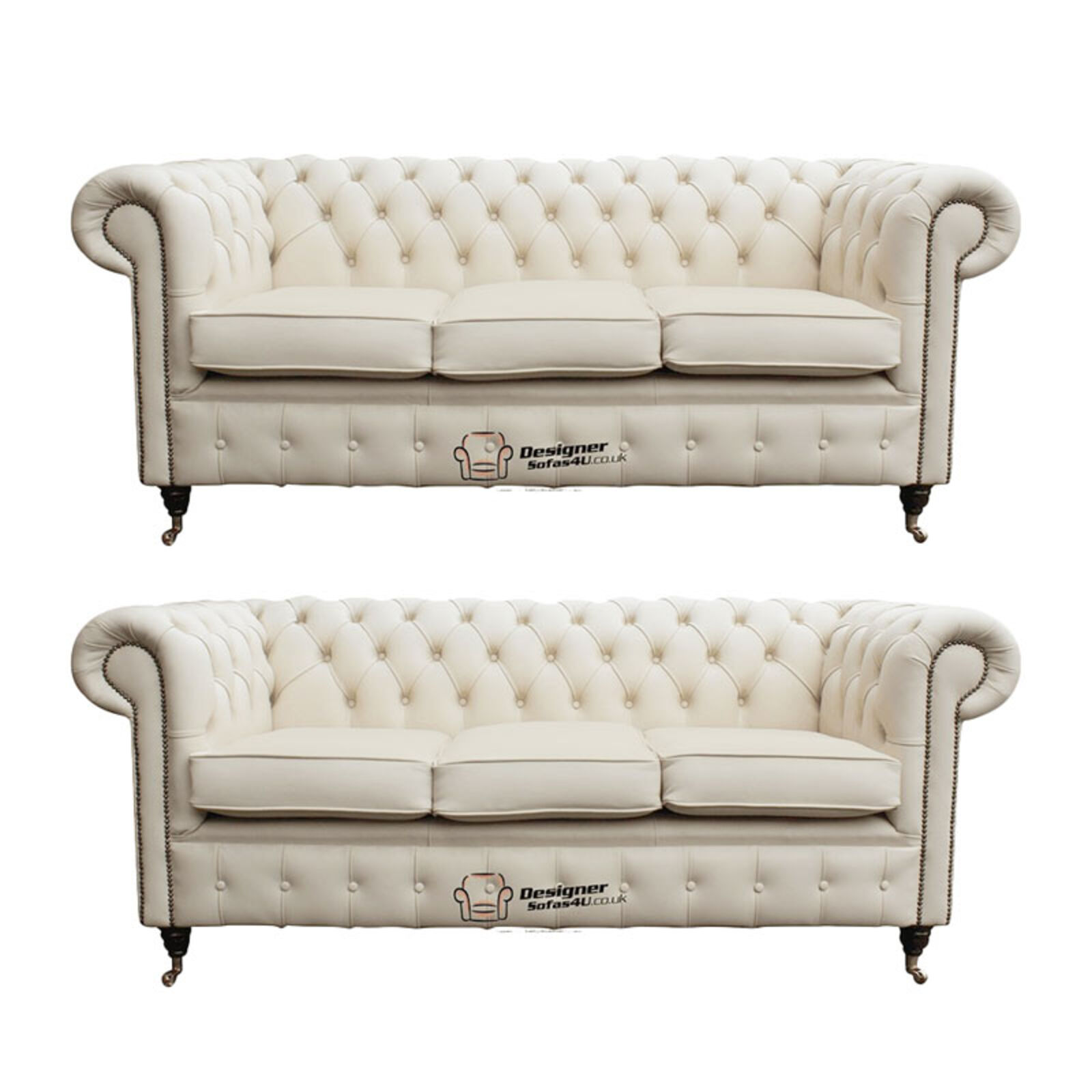 Chesterfield 3+3 Leather Sofa Offer Ivory