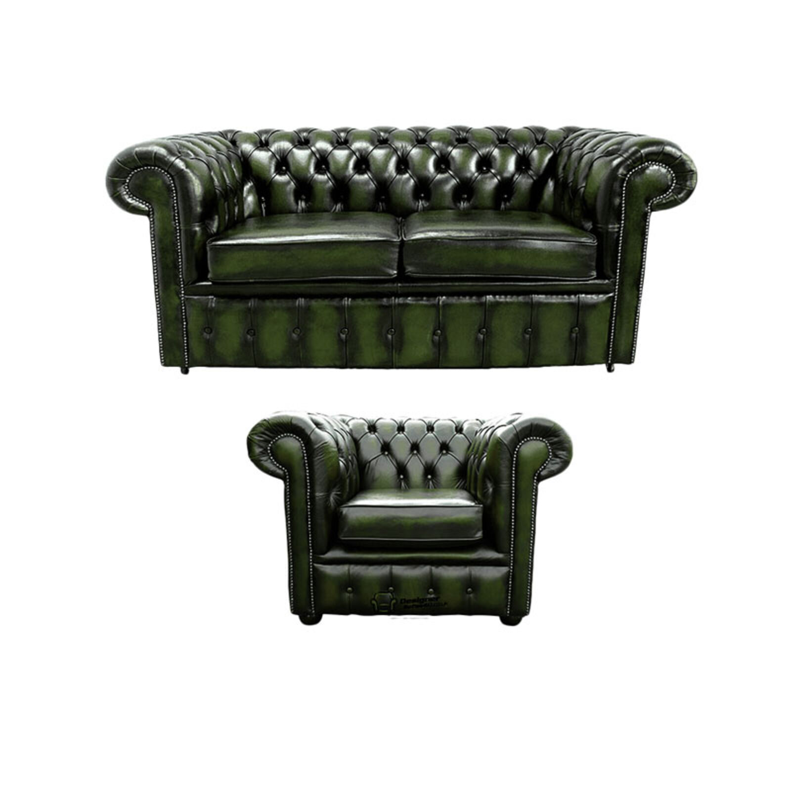 Chesterfield 2 Seater Sofa + Club Chair Leather Sofa Suite…