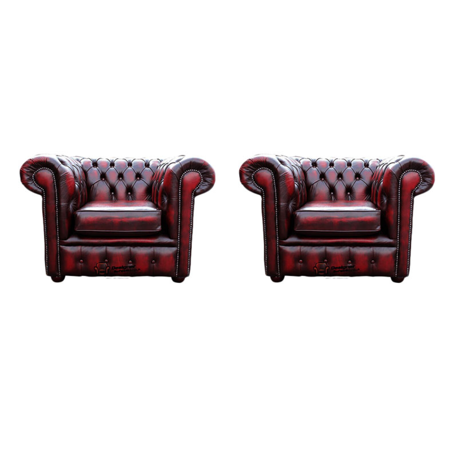HANDCRAFTED IN ENGLAND The Chesterfield Classic Suite available in 2 xc Club Chairs ( 2 x Club Chairs). The Chesterfield Leather Sofa with it\'s unique Low Back Style, Deep Buttoned Arms and Back complemented with a Buttoned Front Border. The Scroll Fronted arms on the Chesterfield Leather Sofa are attractively embellished with lines of individual stud nails. An undoubted winner in any room from the cottage to the boardroom. A classic of its kind Traditional Vintage British Style. INTERNATIONAL SHIPPING: For a rough guide to the cost of Worldwide Shipping please click here (*1). PLEASE NOTE: WE ALSO MANUFACTURE 2.5 SEATER CHESTERFIELDS. PLEASE CONTACT US ON 01254 268590 FOR MORE INFORMATION Our Chesterfield Sofas have previously featured on ITV s 60 Minute Make Over programme. Click Here (*2) to view our Chesterfield Wing Chair on the Fox\'s Biscuit adverts. For a LIMITED PERIOD ONLY buy our Exclusive Classic Chesterfield Suites for Half Price. Massive Stock Clearence Event…