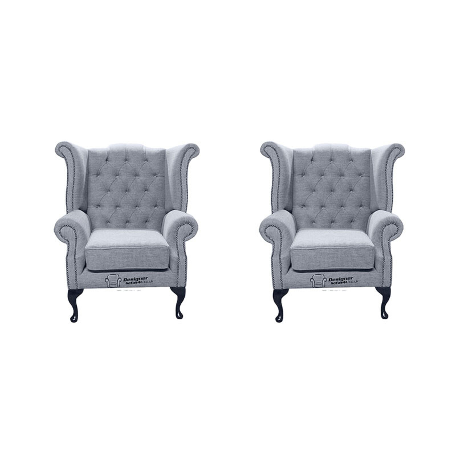 Chesterfield 2 x Queen Anne Chairs Verity Plain Steel Fabric…
