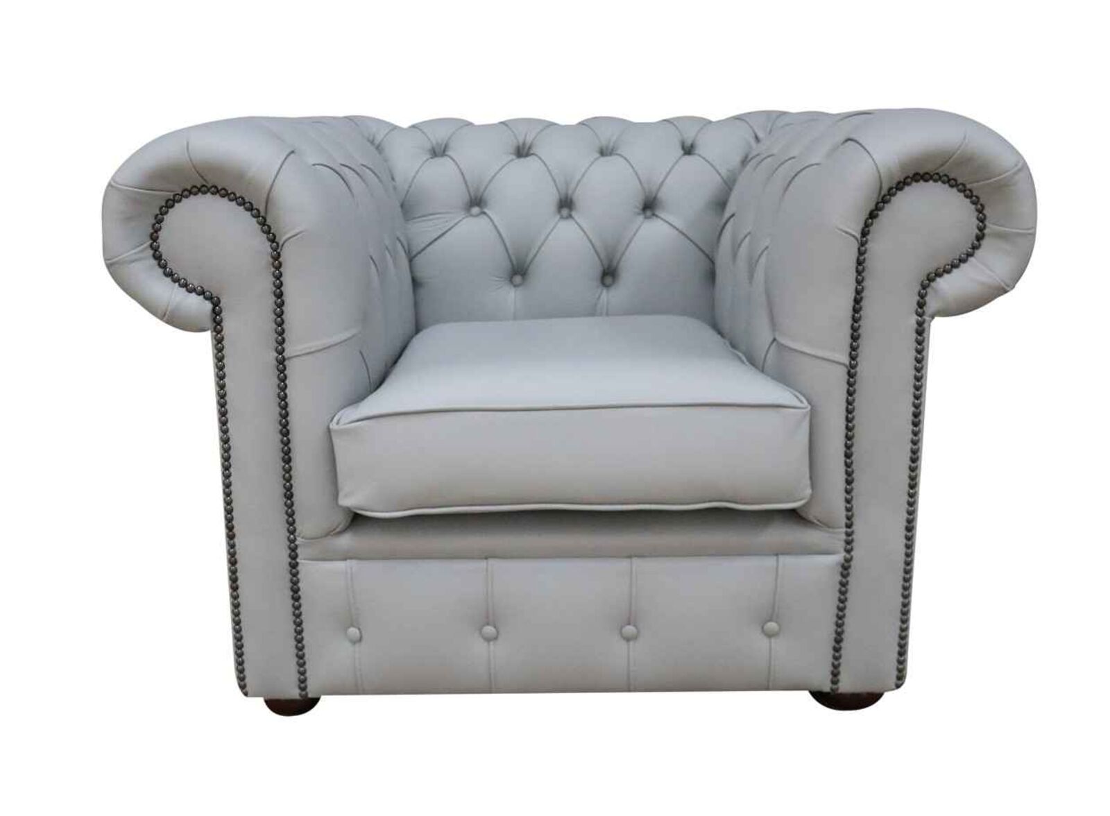Chesterfield Low Back Club Chair Silver Grey Leather