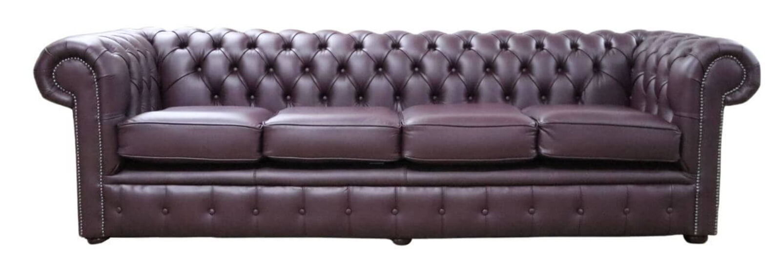 Chesterfield 4 Seater Settee Dark Grape Leather Sofa Offer