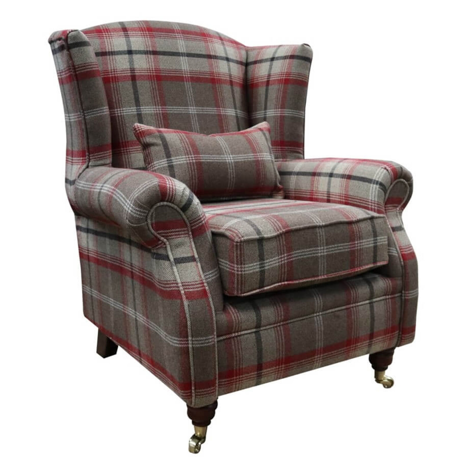 Wing Chair Fireside High Back Armchair Balmoral Rosso Check…