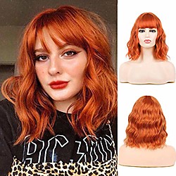 Synthetic Wig Bouncy Curl With Bangs Wig Azure PinkRed sepia Orange Synthetic Hair Women\'s Soft Fluffy Mixed Color Lightinthebox